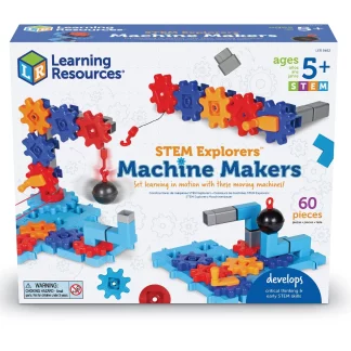 Young mechanical engineers can design, build and test 9 simple rotating machines by following the construction guides on the included STEM challenge cards and using the construction pieces in the set. Inspired by machines found in the real world, your child will build a spacecraft, a satellite dish, a crane and more, while learning the fundamental principles behind the design of all kinds of specialized mechanical equipment. This 60-piece STEM construction toy set includes all the gears, pulleys, belts and fasteners needed to build simple machines, plus 10 challenge-filled activity cards. This set is perfect for restless young minds in the classroom, in a STEM club, or for learning through play at home.