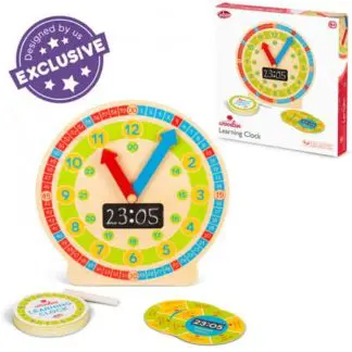 Comes with a set of cards to help make it into a game, challenging the child to tell time in a variety of different ways. The clock stands 24cm tall.