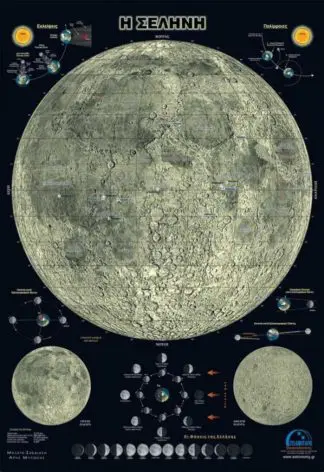 Στον εντυπωσιακό Χάρτη της Σελήνης οι σχηματισμοί αναφέρονται με τις κλασικές ελληνικές ονομασίες τους. Η απεικόνιση της μορφολογίας της θεατής πλευράς της Σελήνης θα ικανοποιήσει κάθε απαιτητικό παρατηρητή. Για να επιτευχθεί η απόλυτη ορθότητα στην απόδοση του ανάγλυφου, χρησιμοποιήθηκαν 64 βαθμονομημένες εικόνες υψηλότατης ανάλυσης οι οποίες πάρθηκαν πριν λίγα χρόνια από ειδική διαστημοσυσκευή, η οποία επισκέφθηκε τη Σελήνη και την χαρτογράφησε.